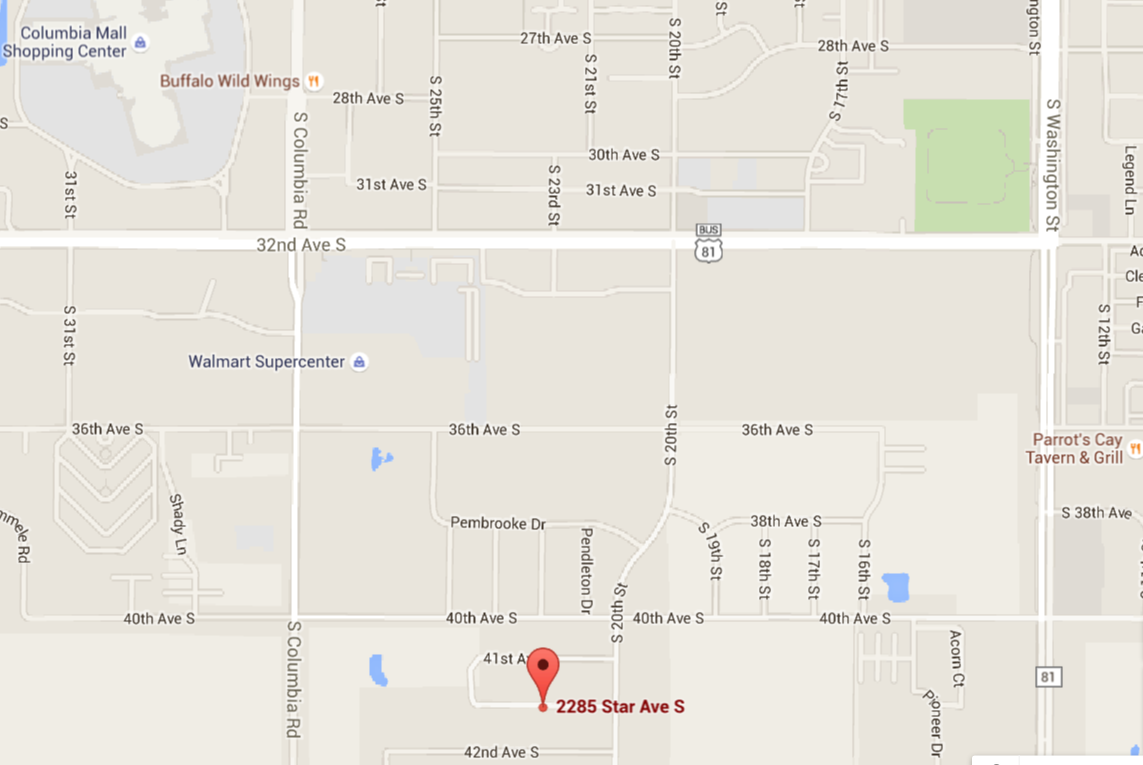 Directions Dr. Kelly Bishop-Diaz, Ph.D. Licensed Psychologist 2285 Star Ave. S. Grand Forks, ND 58201 Directions from S Columbia Rd.: From S Columbia Rd, turn Left onto 32nd Ave S. Turn Right onto S 20th St. Continue on S 20th St. until you reach Star Ave S. Turn Right onto Star Ave S. 2285 Star Ave S will be on the left. Directions from S Washington St.: From S Washington St, turn Right on 40th Ave S. Turn Left on S 20th St. Turn right onto Star Ave S. 2285 Star Ave S will be on the left. ![]() |